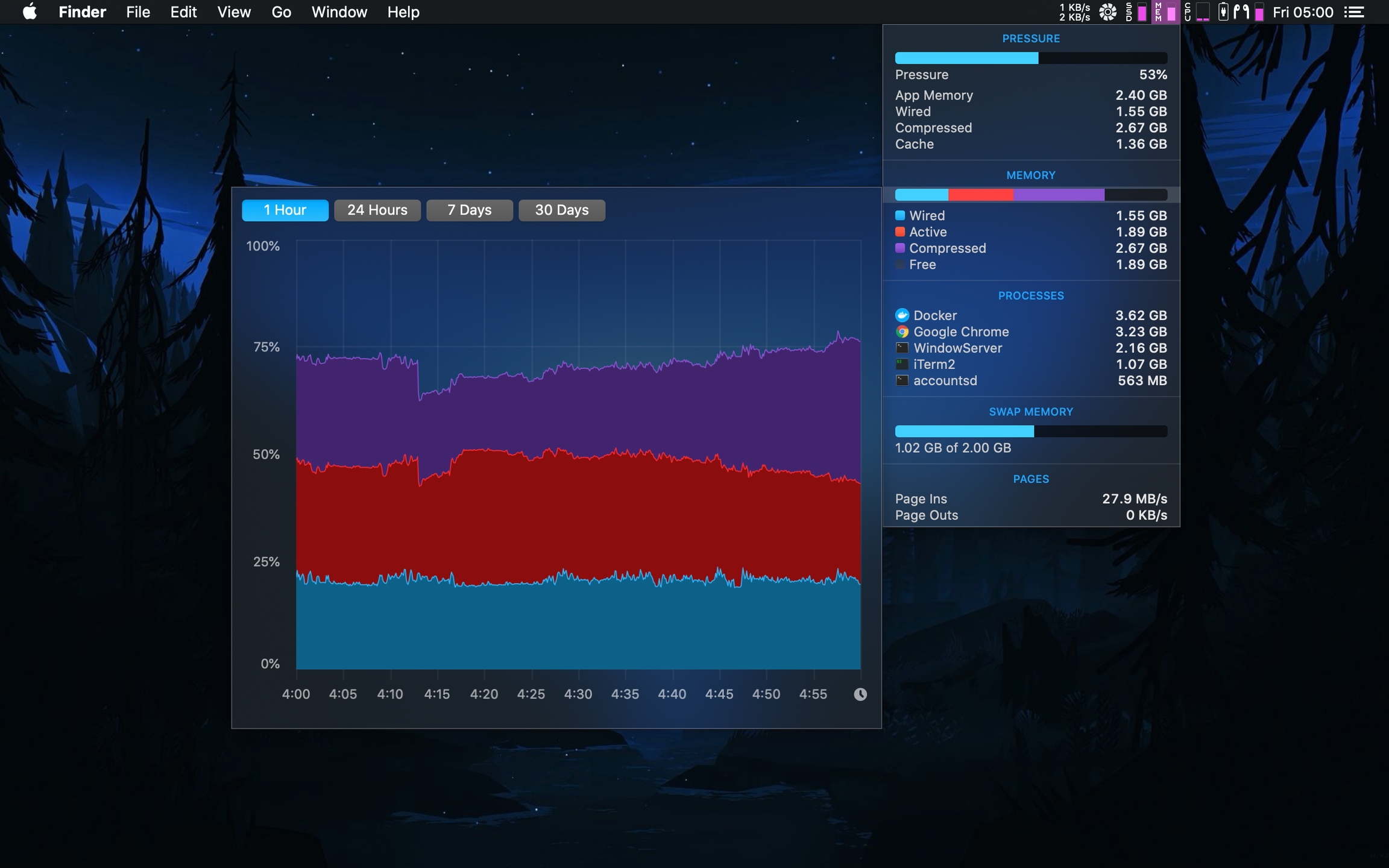iStat Menus is a system monitoring application that provides information on CPU, memory, storage, network, battery, weather, sensors and calendar notifications. It is located as icons on the menu bar. The application also offers customisability features in themes and colours, what information is shown, and offers integration with apps such as the Mac calendar.